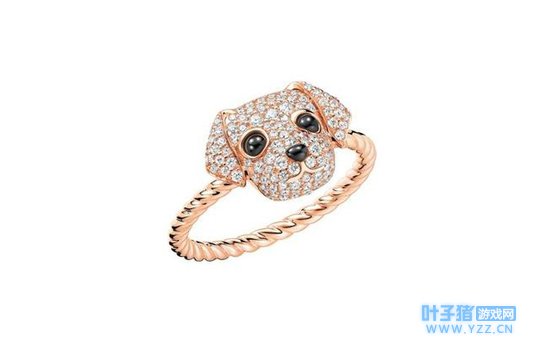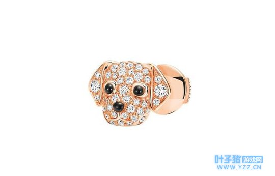 在手链、戒指以及耳环的设计上 仍保持了小狗头部的造型 用缟玛瑙点亮狗狗下垂的双眸,两只耳朵非常逼真 让人爱不释手