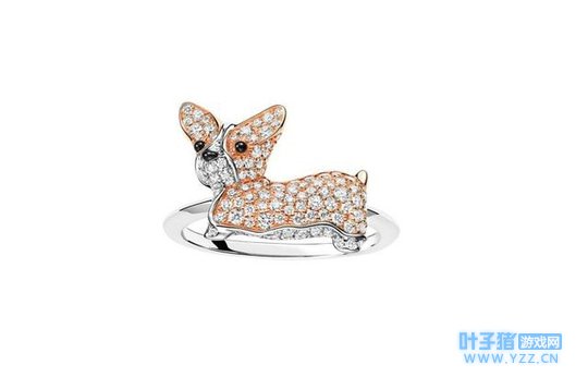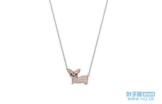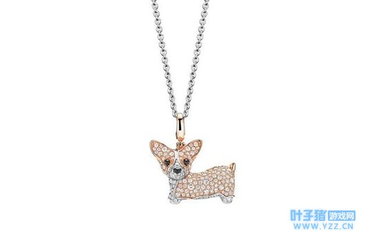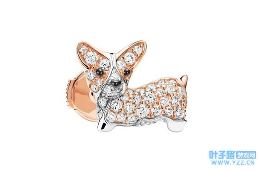 柯基犬Rambo聪明而有耐性 可作为朋友照顾他人的情绪,陪伴孤单的病患 这只狗狗的吊坠分大中小三个尺寸,整体采用18K玫瑰金 在狗狗鼻子、颈部和四肢的部分以白金打造 两种不同色彩带的金属碰撞让柯基犬活灵活现 在眼睛和鼻子部分镶嵌黑色缟玛瑙,十分可爱。