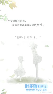 初夏的午后,雨滴停留在空中,小小的女孩在马路边走着,脚步轻快。一片银杏落在小女孩的头顶,她抬起手,小心翼翼地放进口袋。橱窗里的小熊睁着圆圆的眼睛,冲小女孩甜甜地笑。街角的香樟树,哗啦啦地响,岁月随着微风,轻飘飘地溜走。小女孩绕过街角,她看着眼前笑得温柔的女生。 “你终于回来了。”