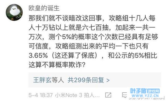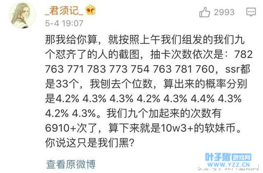 但是显然大家对这种说法都不买账,不少网友表示强氪大佬算出来的概率仅有4%左右,并没有达到所谓的5%的爆率,这算不算欺诈呢?还有网友举例表示总共加起来将近7000抽,如果还代表不了什么,真的没话说了,难道这么多人抽奖都没达到5%的标准,只能用脸黑来解释吗? 而这条解释微博,也在一下午的时间内被顶成热门,截至目前,评论已经超过三万条,可见玩家们对这件事有多愤怒了。