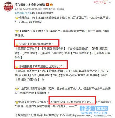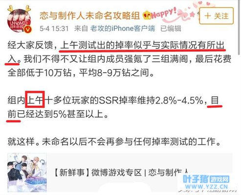 而之前曝光《恋与制作人》各时段SSR掉率不同的未名攻略组也在近日宣布隐退,原因是承受不了越来越多的压力,同时还表示退居幕后是希望有一个安静的游戏环境。