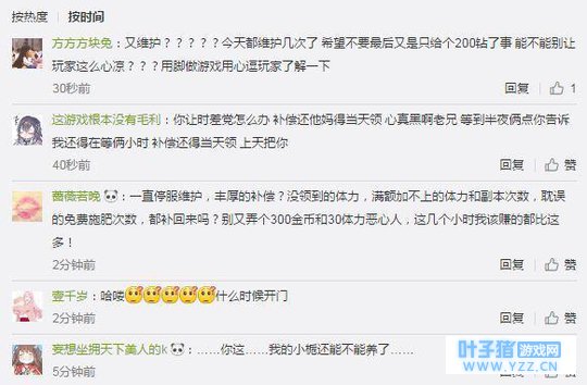“一直停服维护,丰厚的补偿?没领到的体力,满额加不上的体力和副本次数,耽误的免费施肥次数,都补回来吗?别又弄个300金币和30体力恶心人,这几个小时我该赚的都比这多!”