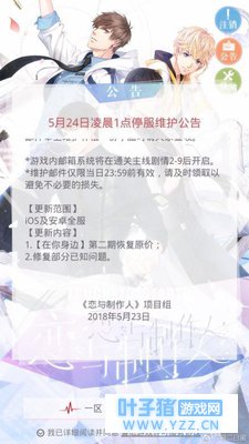 恋与制作人:5月24日游戏维护更新,无干货,手游投诉榜位居第一