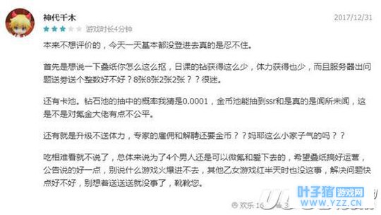 (截图来源:艾瑞指数) 短则三个月,长则不过半年的大起大落不禁让人发出疑问:上线便成绩不俗的《恋与制作人》为什么这么快就凉了? 谈及放弃《恋与制作人》的原因,23岁的王小姐坦言称:“太贵了,氪不起,贫穷的我养不起四个野男人。满级sr比不过一个ssr,隐隐觉得恋与在下调卡池抽中sr和ssr的概率,不重氪后面的章节基本很难过关。”