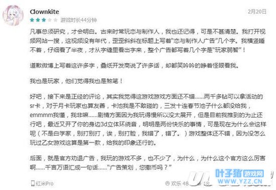 与此同时,游戏的运营维护方面却没能跟上用户在数量和金钱投入方面的跃进式发展。《恋与制作人》的官方态度,引起了不少玩家的不满:操作体验差、活动骗氪、掉落率太低、平衡性不好、官方态度不积极甚至拉黑粉丝;内测时的问题没解决,就着急公测。种种行为被用户诟病为给人一种“捞了一把就跑”的感觉。