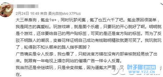 笑容逐渐消失.jpg 这支广告一经发布,便遭到了玩家的激烈吐槽:“气炸了,玩个游戏而已,谁会真代入现实啊!”“是看我拿不动刀了吗,原来官方觉得我们就是这样的?”返乡车上叽叽喳喳毫不顾及同车乘客感受,在以炫富为主题的朋友聚会中炫耀自己的四个“男朋友”,面对母亲催婚一本正经地将游戏角色介绍成自己的男友来哄妈妈开心……如此抹黑般标签化的夸张广告描写,让莫名其妙被代表的玩家“太太团”们怒火中烧。骂声蜂拥而至,直接将其骂上了微博热搜。