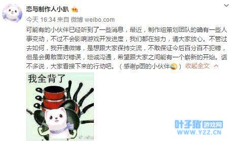 “恋与”新任制作人开博发声 言语坦诚赢粉丝期待