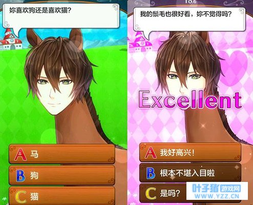 而游戏的玩法也很简单,只需要不断地点击马王子身边的道具,增加好感度。需要注意的是,每一次点击都会减掉一定的活力值。所以注意不要让马王子太劳累哦! 马王子与你的套路也是满满的哦!注意看清题目再回答问题。比如当马王子问你:“你喜欢狗还是猫”,如果你自作主张的选择了马,可是会被扣分的!