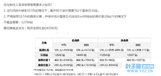 是按照掉率10.5%来计算的,学长的卡片估计也差不多,这个表格,做的也太仔细了,木木子觉得没什么自己需要补充的了,如果不氪金的话,需要12700钻,好贵啊啊啊啊!木木子之前活动存的钻石倒是够了,但是一花,存货就不足了,好纠结啊啊啊!!