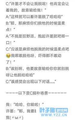 额……事情是酱紫的……前几天在微博许墨超话的某一个帖子下面评论了一下,然后就跟几个许夫人聊起来了!!!因为这个脑洞不可避免的有一个禁词……其实没有那么开车啊,可是审核小哥哥小姐姐不给我发出来……所以看看发图片行不行 (。>∀<。)