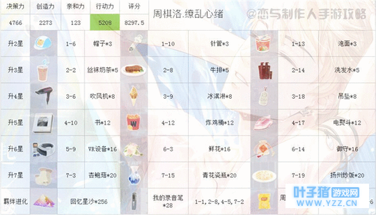 恋与制作人周棋洛缭乱心绪进化材料有哪些 升星材料一览