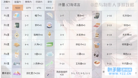 恋与制作人许墨幻海诺言进化材料有哪些 升星材料一览