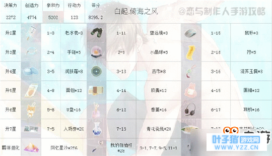 恋与制作人白起倚海之风进化及升星材料一览 白起·倚海之风 无论哪个白起,都是你的。