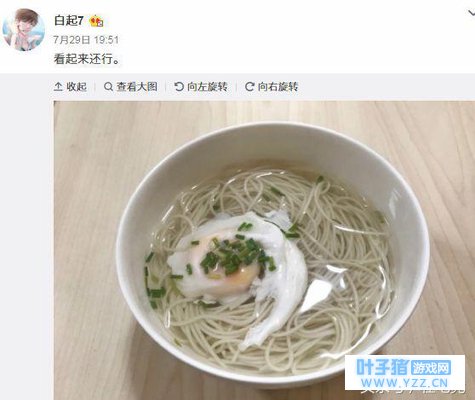 白起的微博,也发了一张长寿面的图片,表示“自己”在过生日。不过这个面似乎有点清淡呀……