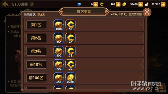 1、每周前10次参加战斗都可以获得额外的荣誉点奖励。(额外的荣誉点是一百点。) 2、根据不同的评分每周都可以领取1次评分奖励。(评分奖励在每周的20:00重制之后就会发放。前十名会发放30-50不等的龙币以及700-1000的荣誉点。后面排名的玩家就只有荣誉点和金币拿。所以玩家们最好努力冲排名不然落后了连金币都很少。) 3、每周会根据排名通过邮件发送排名奖励。(各位玩家请多注意在聊天框的旁边会有一个邮件的标识哦) 4、荣誉点可以在荣誉商店中购买心仪的道具。(暂时荣誉点可以购买的是B级时装以及马粮和竞技场宝箱。竞技场宝箱会获得金币和龙币的随机奖励) 以上就是我给大家分析的天梯竞赛的1V1玩法。还有一个很重要的事情是,每天在19:00点将会开启公会天梯赛,持续十分钟,会有四个公会随机匹配在一起。在公会天梯赛的时间里,获胜者会有额外的奖励。公会恭喜排行前三的也会获得额外的奖励。 [编辑:叶子猪小秘书]