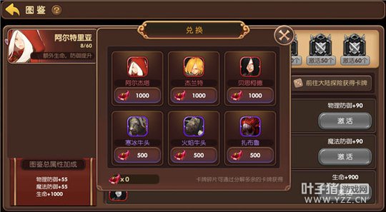 踩到图鉴格子可以直接获得一张随机图鉴。 踩到关卡格子可以进行冒险游戏,游戏成功后直接获得图鉴奖励。 踩到宝箱格子后,宝箱会占据一个图中间的宝箱位置,需要玩家们手动打开宝箱,花费时间越长的宝箱可获得的图鉴品质越好,也可以直接用龙币打开宝箱。 走到终点后会刷新地图跟奖励,重新开始下一轮游戏,不过骰子最多累计10次,使用完之后需要重新累计。人物的等级越高可不断开启新的探险模块。 在格子中会走到刺激的冒险关卡,进入之后随机遇到不同的地图,需要玩家们机智的应对才能挑战成功获得图鉴奖励。在冒险关卡中的辨别真假地图中,玩家们需要正确击杀假女妖,如果击杀错误会被死神带走,游戏挑战失败。在靠近女妖时,假女妖可做出真女妖没有的动作,玩家们可以根据这一提示去判断假女妖的位置,也可以直接用最快的速度去击杀掉所有女妖也算挑战成功。 在冒险关卡中,不仅有辨别真假地图,还有寻找宝箱,驱赶猎犬,方块迷阵等多个充满趣味跟挑战性的地图,每次都是随机进入地图,可玩性很强,进入不同的挑战,玩家们需要根据中央的提示完成挑战,部分关卡难度会相对较难,需要玩家们灵活应对。玩家们每天的体力值消耗完之后,不妨到这里进行一番有趣刺激的挑战活动。 在探险大陆中获得的图鉴可以在人物面板中的图鉴按钮中打开,在这里可以看见各种各样的图鉴组合,搜集到不同的图鉴组合后可以激活玩家的自身属性,提高战斗力,组合数激活越多还能获得组合数加成的效果,再次提高自身属性。 多余的没有用的图鉴可以分解掉获得卡牌碎片,再用卡牌碎片去兑换自己需要的图鉴。