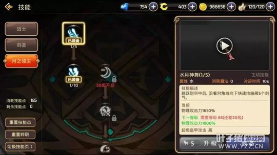 月之领主:可以提供持续的远程输出,技能攻击范围比较大。 水月神舞:跳跃到空中,沿着对角线乡下快速施展5个剑气,短CD的高伤害技能,CD只有10S。 (注意:水月神舞只能打击离自身有一定距离的目标,距离自身太近可能会打不到。) 猛砍站姿:快速向前方多次发射剑气,最后一击可以发出强力剑气,是站桩的持续远程输出技能。 PVE建议携带:三连斩、切骨之刺、月光碎片、水月神舞、猛砍站姿、真空连爆(40大招)。 PVP建议携带:三连斩、切骨之刺、直线冲击、猛砍站姿、水月神舞、真空连爆。