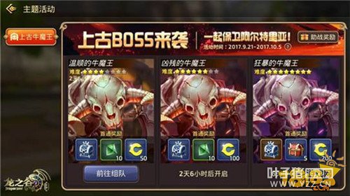 上古牛魔王开启 击杀得魅力时装 9月21日龙之谷手游全新版本驾到,上古牛魔王将携时装登场。此次到场的上古BOSS新玩法将分为温顺的牛魔王、凶残的牛魔王和狂暴的牛魔王三大副本,并会陆续开启带给玩家们不同的限时体验。副本中不仅会有牛魔王这个硬骨头驻守BOSS,更有一干各具独特技能的小牛们,优先击杀它们方能顺利致胜。