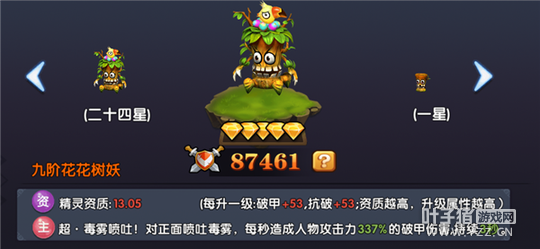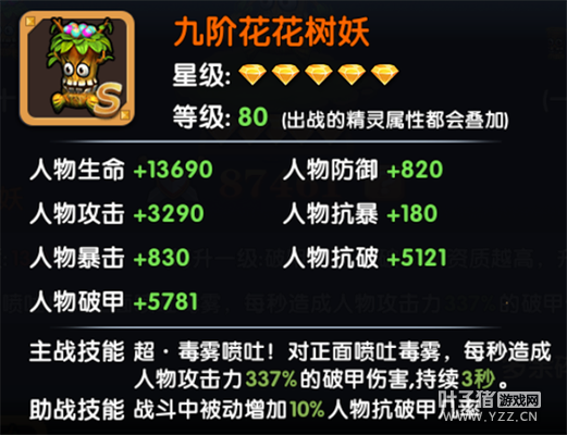花花树妖的主属性是破甲和抗破。