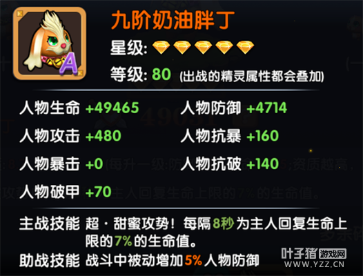 奶油胖丁的主属性是防御和生命。