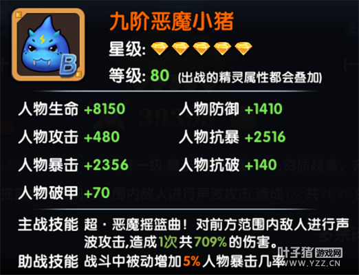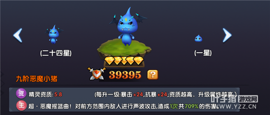 能卖萌能耍酷,可以战斗可以谈心!小精灵在《冒险战记》中,是贴心宠物、是强势伙伴、更是战斗助力!从它们的幼年时期到完全成熟,它们的外貌和属性加成都会随着升级而不断变化。 今天,艾米酱为大家带来的是新手小精灵恶魔小猪的介绍。 恶魔小猪刚出生的时候是一坨“蓝翔”的,在不断成长之后,长出了恶魔小翅膀和一对萌萌的獠牙。