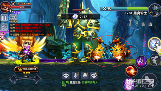 魔王之吼:每隔一定的时间,BOSS便会召唤出几个鬼东西,伤害高,需要尽快解决掉。