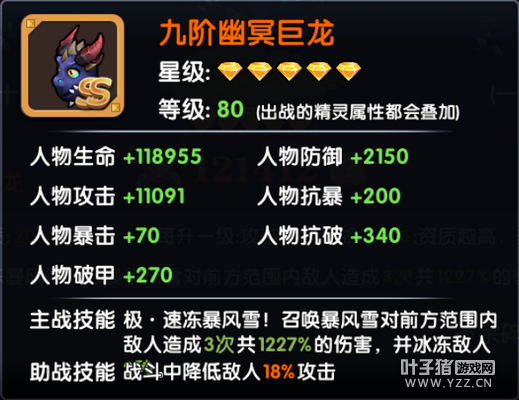 幽冥巨龙:高血量加成的同时,主战技能还能对BOSS进行控制。