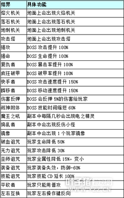 2、BOSS结界,会大大提升挑战难度。包含:熔火机关、落石机关、地刺机关、攻击塔、强攻、强命、复仇者、疯狂破甲、快手者、瞬移者、伤害反弹、战神附体、魔王之吼、捣乱者、镜像、破血诅咒、无力诅咒、巫师诅咒、装备诅咒、技能诅咒、平砍者和左右互换。