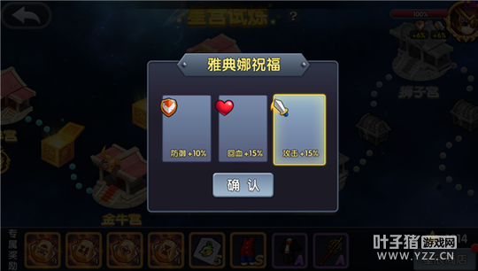 4)在第3/6/9关战斗结束后会获得雅典娜的祝福,可以选择适合的BUFF。
