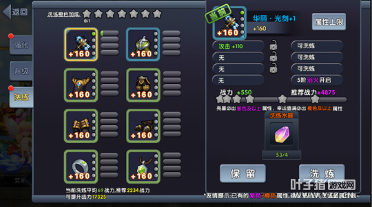 装备洗炼 1.对装备进行洗炼,保留属性可以提高装备属性,金色属性为当前装备等级可以洗炼到的最高数值的属性,洗到了千万记得要保存! 2.装备等级提升后,洗炼上限也会随着提升,提升后记得继续洗炼提升属性哦~ 洗炼水晶的获取途径有: 1.冒险掉落:普通冒险、精英冒险都会有洗炼水晶的掉落; 2.寻宝掉落:金币寻宝、精灵寻宝和符文寻宝中也有机会获得洗炼水晶; 3.神秘商店:神秘商店中也有很多洗炼水晶出售,还会遇到打折商品哦,不要错过~