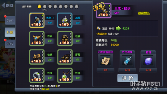 装备升级 人物到达一定等级后,就可以对装备进行升级操作,升级后即可提高装备属性和玩家战力。 装备升级需要消耗装备图纸和两类装备材料,在升级面板,可以通过点击相应的道具图标,展开道具获取途径面板,便捷的获得道具。 下面来介绍一下装备材料的获取途径: 1.装备图纸:来源于精英冒险掉落; 2.装备材料:来源于普通冒险掉落; 3.神秘商店:记得经常打开神秘商店看看,会有各类装备材料出售哦~