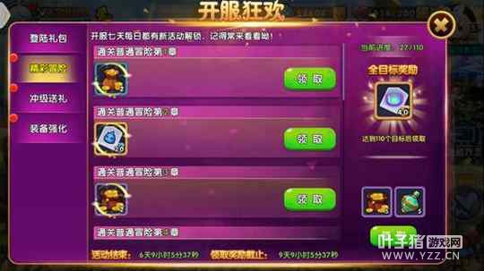 福利就仅此而已了嘛?怎么可能!同时开启的还有“精彩冒险”、“冲级送礼”、“装备强化”这几项。