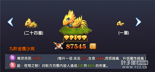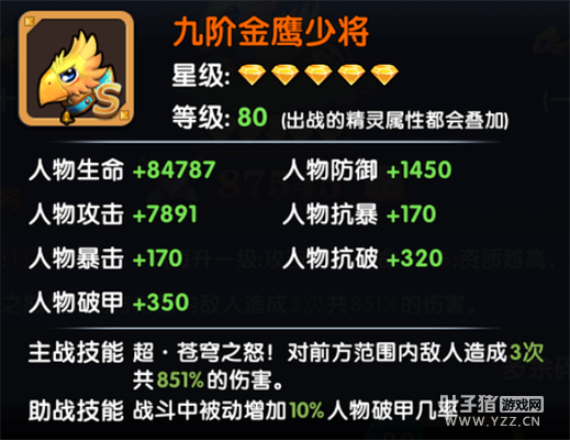 能卖萌能耍酷,可以战斗可以谈心!小精灵在《冒险战记》中,是贴心宠物、是强势伙伴、更是战斗助力!从它们的幼年时期到完全成熟,它们的外貌和属性加成都会随着升级而不断变化。 今天,艾米酱为大家带来的是小精灵金鹰少将的介绍。 雪爪星眸世所稀,摩天专待振毛衣。虞人莫谩张罗网,未肯平原浅草飞。