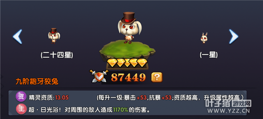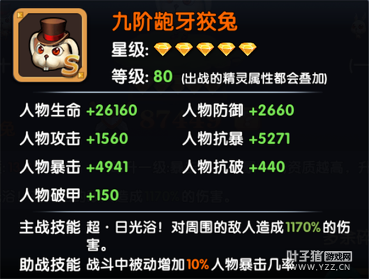 龅牙狡兔的主属性是暴击和抗暴。