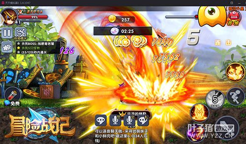 【游戏操作:富有打击感的操作】 在操作上,《冒险战记》采用了常见的虚拟摇杆加虚拟按键相结合游戏操作模式,可以通过灵活的走位和技能释放来击败敌人。左手控制角色前进后退,配合右手炫酷技能释放,大招齐发,毙敌人于无形。不再拥有单调唯一的技能,连招、跳跃、浮空都有着极为流畅的打击感,大神级操作水准让玩家玩到畅快!当然,为了让你解放双手,自动战斗模式同时启动,体验极致快感! 图03 极致操作快感