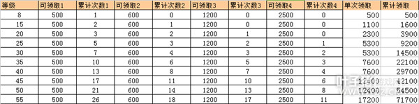 举个栗子: 一个玩家在第一天玩到了30级,他在第一天将可领取到500*7+600*4+1200*3+2500*2=14500钻 到了第二天,他仍然可以领取14500钻。等级提升之后,还是可以获得因等级提升而增加的领取次数的 [编辑:叶子猪小秘书]