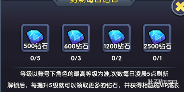 重点来了!!! 所领取的钻石都将全数计入vip充值,提升vip等级。并且每天领取的次数都会重置。