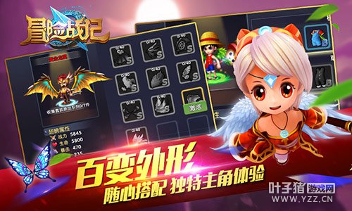小精灵助阵 【萝莉御姐 一秒变身】 女人的衣柜中,总是缺少一件衣服。同理可证,在游戏中,玩家的衣橱中也总是缺一件趁手的时装。不用担心,《冒险战记》百变时装玩法已经上线,头饰、面部、服饰、武器、光环五大部分随心搭配,御姐萝莉、型男正太自由切换,不再是一套服装玩到老,百变不腻!除了外形靓丽惹人眼球,时装带来的强悍战力也不容小觑,搭配一身合心的时装,再强的敌人都不再话下!