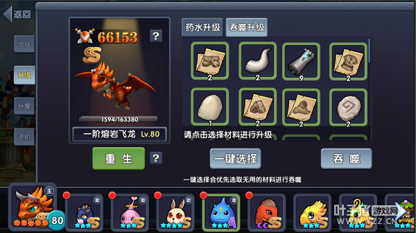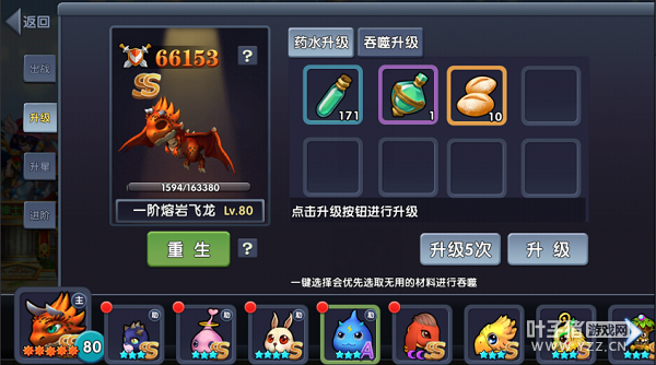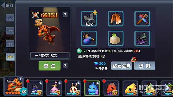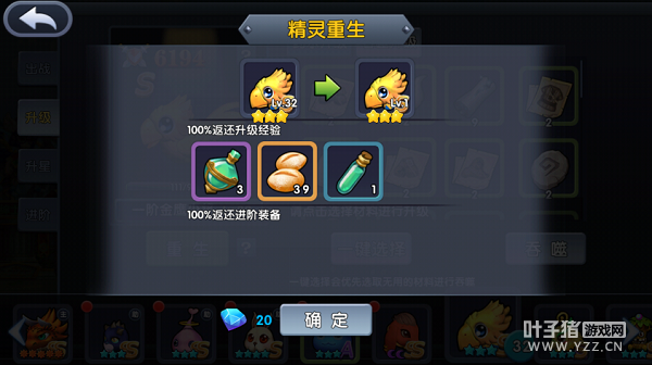 5、精灵重生 1.可以使用重生功能从已经培养的小精灵处获得先前进阶和升级的所有道具。 2.每次重生需要花费少量的钻石