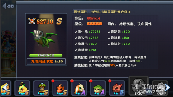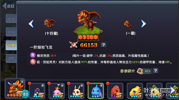 4、精灵升星 1.收集一定数量的精灵魂石,小精灵就能升星(共5星上限) 2.每次升星后小精灵也会拥有更酷更炫的外观。 3.精灵升星后,主动技能和被动技能属性将得到提升。