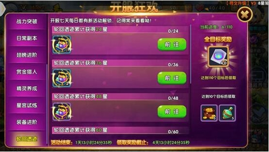 所有玩家在开服第七天即可直接领取奖励丰厚的大礼包,内容为金鹰少将灵魂石*20,洗练水晶*20,高级符文精华*2,扫荡券*10!