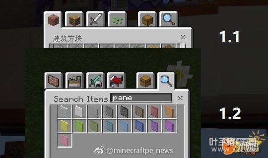 Tomcc:为了响应这个呼声很大的请求,这里有张有些拥挤的截图。这意思是说:铁栅栏和染色玻璃板现在是杆状的了! 关于染色玻璃板的UI图标和形状的变化