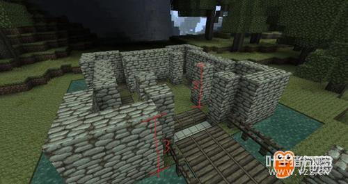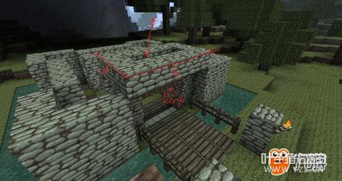 在圆圈所示位置修建石柱并安放火炬提供照明。 注:不提倡露天裸睡!
