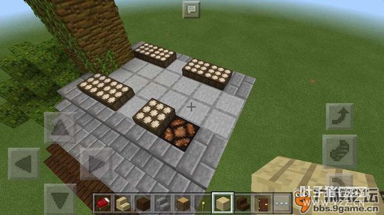 先用树苗培出一棵大树,然后可以做个基座(也可以不做)。再做一条向上的楼梯。