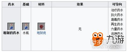 二、材料 1.基础材料:是所有药水的起点。地狱疣是这个阶段加入水瓶的主要材料,出于它被需要用来制作多数的药水。其他所有的基础材料都只能用来制作"虚弱药水"。