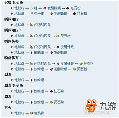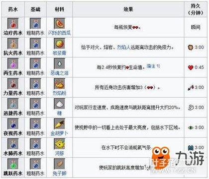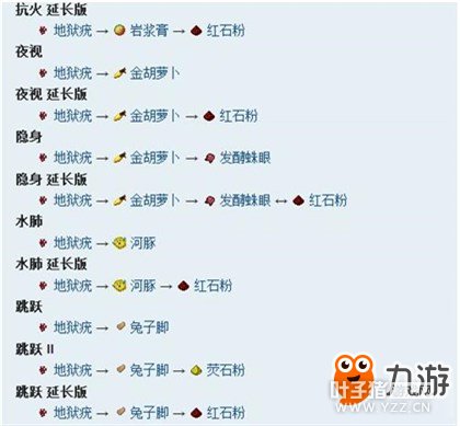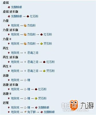 四、配方 以下列出的是酿造每种药水的最有效率的配方。