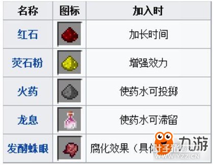 3.改性剂:会改变药水的属性。"时间加长"和"效力增强"的版本可以无限地互换。