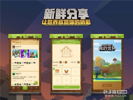 《我的世界》手游在原版基础上新增了好友系统,方便玩家即时联系。只需要搜索对方昵称,就可以轻松添加成为彼此的好友,与你的小伙伴实时聊天互动,约个时间一同游戏吧。 进入联机大厅,点击任意房间便能够轻松传送至别人的世界。除了与好友更加便捷地联机游戏,在同一个世界并肩冒险,还可以结识与你志同道合的新朋友,在“世界”内外自由穿梭——从游戏中的探索之旅,连通真实的社交世界。 中国版手游的社交系统不仅于此。《我的世界》的每一位冒险家都曾经收获难忘的经历,每一名建筑师都拥有自己骄傲的创造。基于新鲜事功能,玩家们可以随时随地记录游戏中所有特别的时刻,与好友分享发现你收获第一块钻石的喜悦、建成第一座小屋的感动。@好朋友一同加入,把你的故事分享给整个世界。