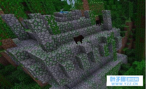 七、丛林神庙:由圆石和苔石组成的森林遗迹,奖励主要有金锭、金苹果、钻石、火药、铁锭、腐肉、骨头等!