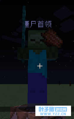 白天它就着了,所以只能在黑夜截图 /summon zombie ~ ~ ~ { CustomName:"僵尸首领", CustonNameVisible:1 } 自定义名字: CustomName:"名字" 名字总是显示 或 光标指向时才显示: CustonNameVisible:1 / 0 再给它穿上全套钻石装(1.9+):